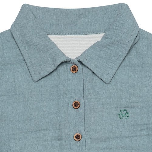 IL Body in mussola biologica per bambini, colore acqua È realizzato in mussola super morbida, come una seconda pelle. Questo materiale è noto per la sua leggerezza e traspirabilità, ideale per la pelle delicata dei bambini. Il tuo bambino godrà di una libertà di movimento illimitata e del massimo comfort per tutto il giorno.