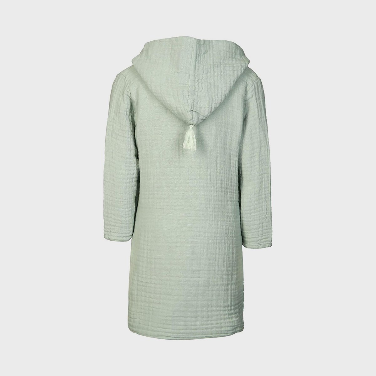 Dein kleiner Rebell verdient das Beste: Der Bio Musselin Kinder Bademantel mit Kapuze in Mint (5-6 Jahre)