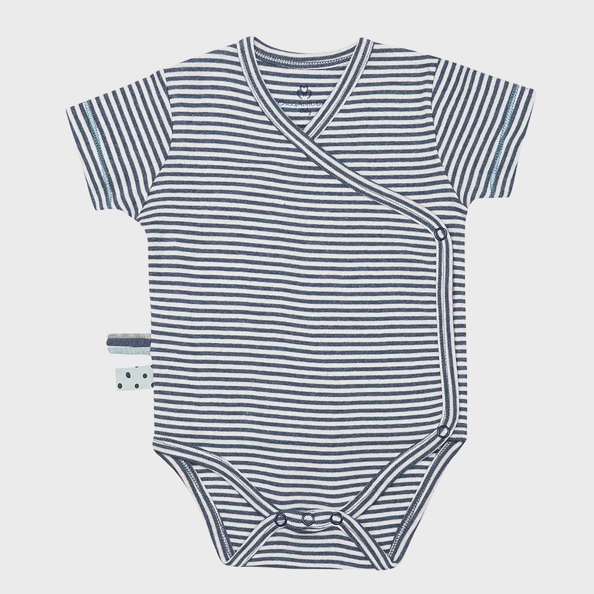 Il tuo piccolo ribelle con stile: il body kimono avvolgente per neonati a maniche corte in cotone biologico a righe indaco!