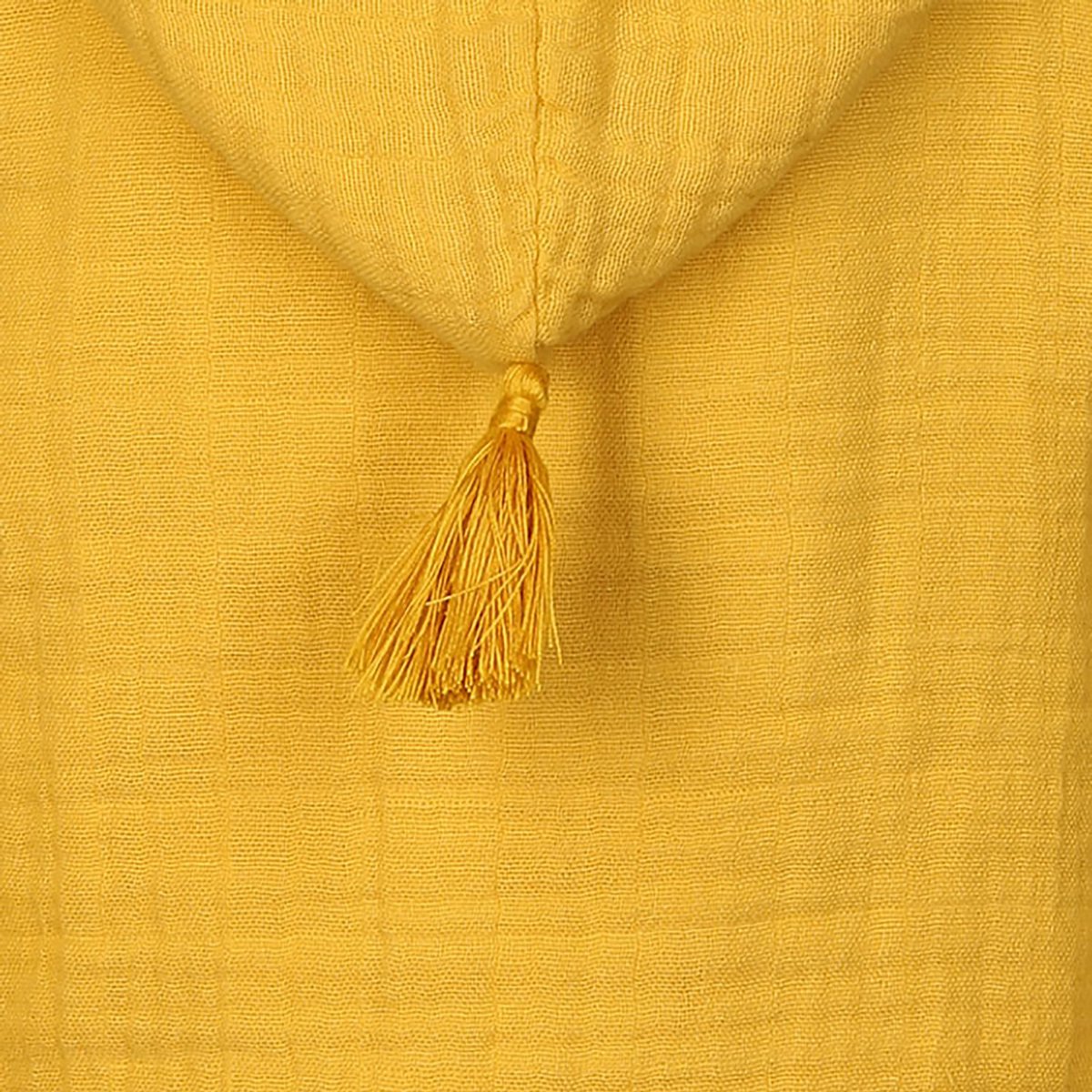 Nach dem Baden und Waschen absorbiert der leichte Musselin-Bademantel in Senf aus Organizer schnell und sanft Feuchtigkeit aus dem Körper des Kindes und hinterlässt ein angenehmes Wohlbefinden des Wohlbefindens. Gleichzeitig kann der Bademantel den Körper der Kinder erwärmen. Es hat eine Schutzhaube und einen Krawattengurt an der Taille.